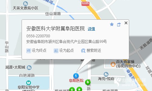 阜陽站250米向西步行 到 火車站24站乘 68路 (東勝汽配方向) 到 安醫(yī)阜陽醫(yī)院東門430米向南步行 到 安徽醫(yī)科大學附屬阜陽醫(yī)院