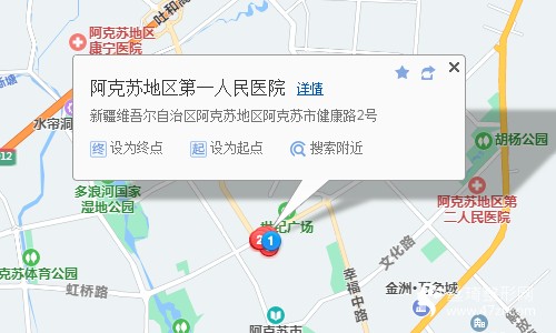 阿克蘇地區(qū)客運站190米向南步行 到 塔中路2站乘 29路內(nèi)環(huán) (晶水路方向) 到 健康路740米向北步行 到 阿克蘇地區(qū)第一人民醫(yī)院