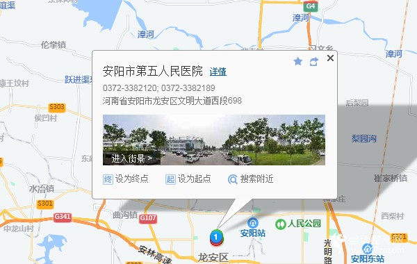 安陽東站670米向西北步行 到 高鐵站26站乘 36路 (公交西站方向) 到 地質(zhì)隊970米向南步行 到 安陽市第五人民醫(yī)院