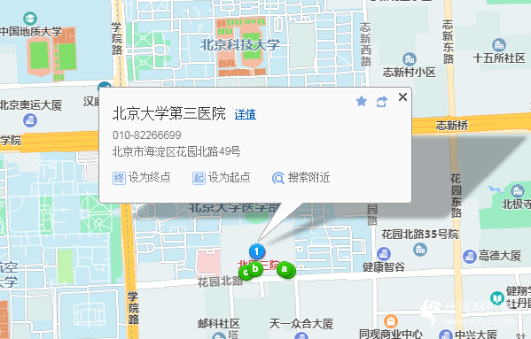 北京站110米向西步行 到 北京站 C東南出口 進站8站乘 地鐵2號線內(nèi)環(huán) (崇文門方向) 到 車公莊 B口(東北口) 出站260米向東步行 到 車公莊北4站乘 632路 (學府樹公交場站(原五彩城公交場站)方向) 或 693路 686路 到 北京航空航天大學140米向東南步行 到 北京大學第三醫(yī)院