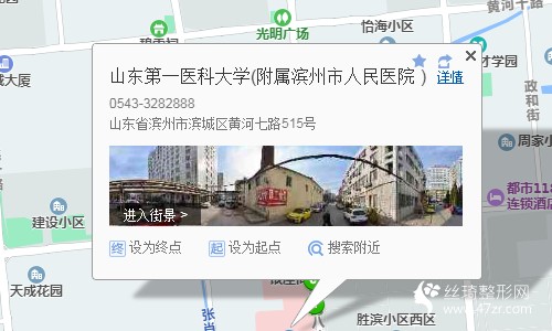 濱州汽車總站50米向西步行 到 公交發(fā)車區(qū)21站乘 103路 (區(qū)防疫站方向) 到 人民醫(yī)院30米向西北步行 到 山東第一醫(yī)科大學(xué)(附屬濱州市人民醫(yī)院 )