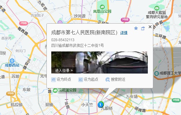 成都汽車總站160米向西南步行 到 五桂橋公交站9站乘 92路 (金花鎮(zhèn)方向) 到 九眼橋南850米向西北步行 到 成都市第七人民醫(yī)院