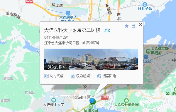 大連站540米向東南步行 到 友好廣場11站乘 16路 (大連海洋大學(xué)方向) 或 901路 23路 到 醫(yī)大二院130米向東北步行 到 大連醫(yī)科大學(xué)附屬第二醫(yī)院