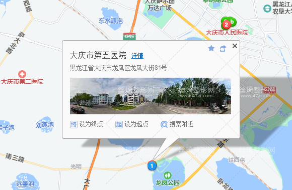 大慶站270米向西北步行 到 公交總站37站乘 32路 (廠西方向) 到 五醫(yī)院400米向東南步行 到 大慶市第五醫(yī)院