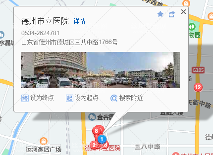 德州站290米向東南步行 到 火車站1站乘 38路 (市立醫(yī)院方向) 到 市立醫(yī)院150米向東步行 到 德州市立醫(yī)院。
