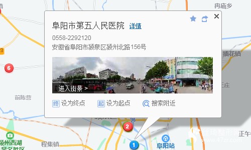 阜陽站670米向西步行 到 阜陽四院3站乘 23路 (食藥品管理局方向) 到 香港財富廣場560米向西北步行 到 阜陽市第五人民醫(yī)院