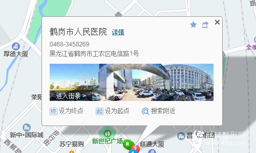 鶴崗火車站280米向西北步行 到 火車站2站乘 2路(北國明珠四期) (北國四期方向) 或 7路 到 新世紀(jì)廣場280米向東步行 到 鶴崗市人民醫(yī)院