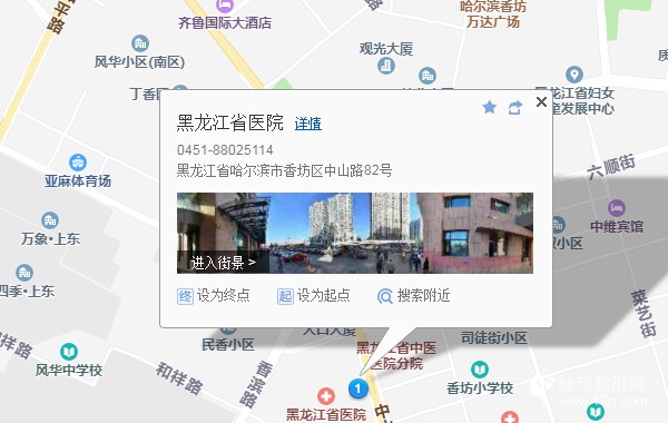 南崗公路客運(yùn)站620米向西南步行 到 哈站(海城橋)7站乘 商務(wù)公交1號(hào)線 (香山小區(qū)方向) 到 中北春城220米向東北步行 到 黑龍江省醫(yī)院