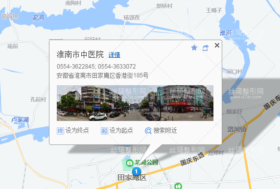 淮南站1.1公里向北步行 到 淮南世家珠寶城1站乘 121路 (田東方向) 到 田區(qū)政府830米向東北步行 到 淮南市中醫(yī)院整形美容???
