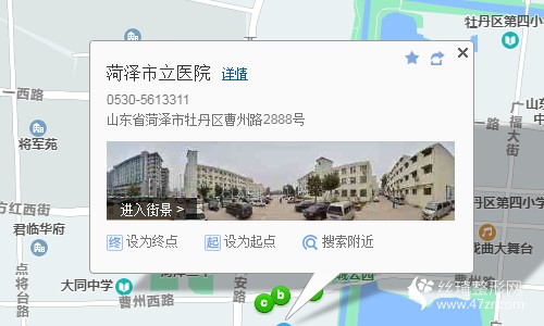 菏澤汽車總站460米向西南步行 到 三角花園4站乘 118路 (河南王方向) 到 二完小790米向西步行 到 菏澤市立醫(yī)院