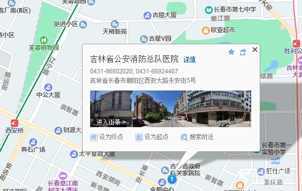長春站720米向東南步行 到 長春站5站乘 25路 (體育場方向) 到 崇智路850米向東南步行 到 吉林消防總隊醫(yī)院