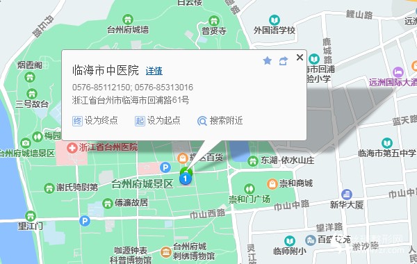 臨海 站180米向東南步行 到 火車站21站乘 臨海211路 (東湖公園方向) 到 升輝裝飾城480米向南步行 到 臨海市中醫(yī)院