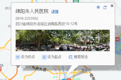 綿陽站470米向東步行 到 臨園路西段5站乘 99路 (萬鴻生態(tài)頤養(yǎng)園方向) 到 東方紅大橋60米向西北步行 到 綿陽市人民醫(yī)院,