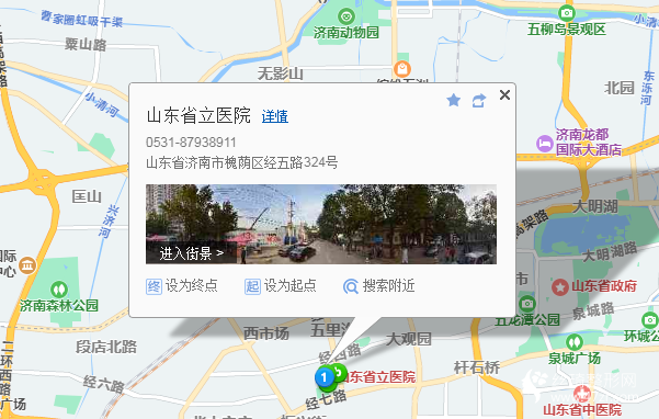 濟南站860米向東南步行 到 天橋南4站乘 K58路 (濟南西站公交樞紐方向) 到 省立醫(yī)院(經(jīng)四緯七)270米向南步行 到 山東省立醫(yī)院