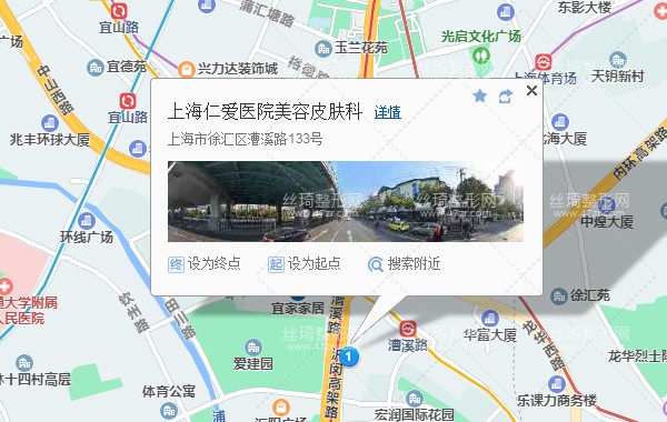 上海長途客運南站190米向西南步行 到 石龍路龍川北路(上海南站)3站乘 157路 (上海體育館方向) 到 漕溪路田林東路70米向東北步行 到 上海仁愛醫(yī)院美容皮膚科