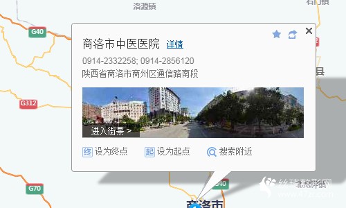 商洛站170米向東南步行 到 火車站9站乘 5路 (公交公司方向) 到 中心廣場11米站內(nèi)換乘 8路10站乘 8路 (廟口橋頭方向) 到 市中醫(yī)醫(yī)院80米向西南步行 到 商洛市中醫(yī)醫(yī)院