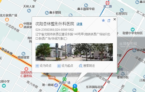 沈陽站120米向西南步行 到 沈陽站南3站乘 鐵西新區(qū)一線 (張士燈具城方向) 或 216路 207路 到 建設(shè)大路云峰街180米向西北步行 到 沈陽杏林整形外科醫(yī)院,