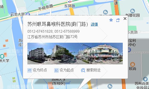 蘇州站80米向東南步行 到 蘇州火車站 5口 進站3站乘 軌道交通4號線 (同里方向) 到 樂橋 5口 出站440米向東步行 到 樂橋7站乘 9003路社區(qū)巴士 (市一中方向) 或204路 到 葑門換乘站南50米向西步行 到 蘇州眼耳鼻喉科醫(yī)院(葑門路)