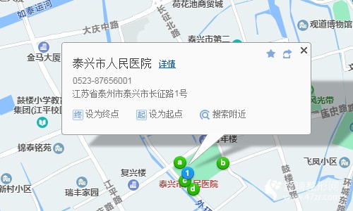 泰興汽車客運(yùn)站270米向西南步行 到 泰興車站9站乘 泰興019路 (中國(guó)銀行方向) 到 中國(guó)銀行180米向南步行 到 泰興市人民醫(yī)院