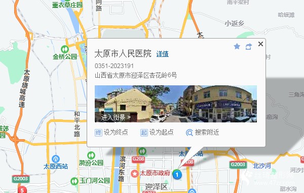 太原站900米向北步行 到 建設(shè)北路五龍口街口3站乘 863路 (后王街方向) 或 73路 到 府東街雙龍巷口280米向南步行 到 太原市人民醫(yī)院