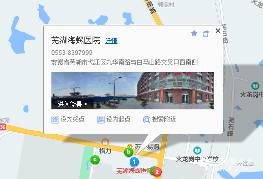 蕪湖站390米向南步行 到 蕪湖站東廣場11站乘 113路(晚) (峨山東路北方向) 到 中醫(yī)藥高專16站乘 109路 (海螺·永盛花園方向) 到 官平橋30米向北步行 到 蕪湖海螺醫(yī)院