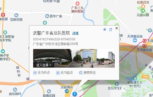 廣州市汽車站公交總站460米向東步行 到 廣州火車站 F口 進站3站乘 地鐵2號線 (廣州南站方向) 到 公園前5站乘 地鐵1號線 (廣州東站方向) 到 體育西路3站乘 地鐵3號線北延段 (機場北(2號航站樓)方向) 到 燕塘 C口 出站670米向東北步行 到 武警廣東省總隊醫(yī)院