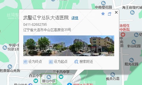 大連站310米向東南步行 到 大連火車站15站乘 30路(特殊時間段) (景山小區(qū)方向) 或 30路 到 高壽街70米向北步行 到 武警遼寧總隊大連醫(yī)院,