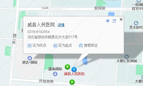 威縣客運(yùn)中心80米向西南步行 到 威縣客運(yùn)站2站乘 臨西903路 (邢臺(tái)中心汽車站方向) 到 縣醫(yī)院60米向西北步行 到 威縣人民醫(yī)院