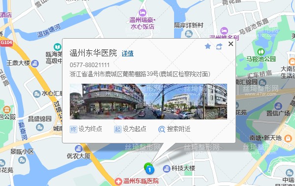 溫州站740米向北步行 到 錦源路口6站乘 B104路 (水心匯昌首末站方向) 到 葡萄棚380米向東北步行 到 溫州東華醫(yī)院