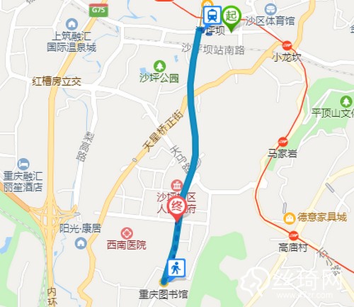 1、沙坪壩火車站向西步行240米到沙坪壩,5口進(jìn)站,乘1站軌道交通環(huán)線(重慶圖書館方向)到重慶圖書館4B口 出站,向北步行740米西南整形美容??漆t(yī)院。
