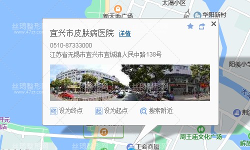 宜興汽車客運站60米向西北步行 到 宜興車站6站乘 宜興245路 (前龍方向) 到 世紀大橋620米向東南步行 到 宜興市皮膚病醫(yī)院
