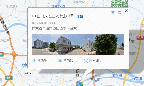 中山站340米向西北步行 到 城軌中山站3站乘 018路 (中山汽車總站方向) 或 005路 到 白沙灣(老富頭)250米向東步行 到 白沙灣(老富頭)6站乘 044路 (第二人民醫(yī)院方向) 到 第二人民醫(yī)院120米向南步行 到 中山市第二人民醫(yī)院。