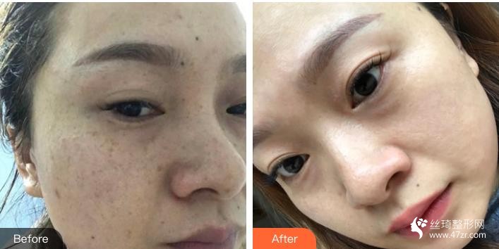 斑點(diǎn)已經(jīng)困了我好多年啦 現(xiàn)在終于鼓起勇氣來(lái)弄它們了。其實(shí)挺害怕的,但是一直因?yàn)槟樕嫌邪?,而且一年比一年?yán)重,心里真不是滋味。用過(guò)很多祛斑的產(chǎn)品,都沒(méi)有用。照了皮測(cè),醫(yī)生說(shuō)是混合性色素斑。今天剛做了一次,做的時(shí)候眼睛被罩住的,只感覺(jué)臉上刺刺熱熱的,然后做完交待了一些注意事項(xiàng),就輕松結(jié)束了?,F(xiàn)在還沒(méi)看出來(lái)果