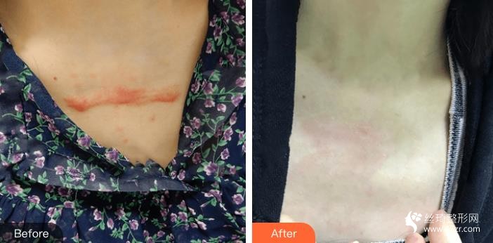 天是第二次過來做了,因?yàn)槲业陌毯蹖儆谕古c皮膚表面,比較難去除的那種,思羽是需要療程的,但是沒想到第一次果就那么好,明X的感覺到疤痕變淡了變淺了,加油!