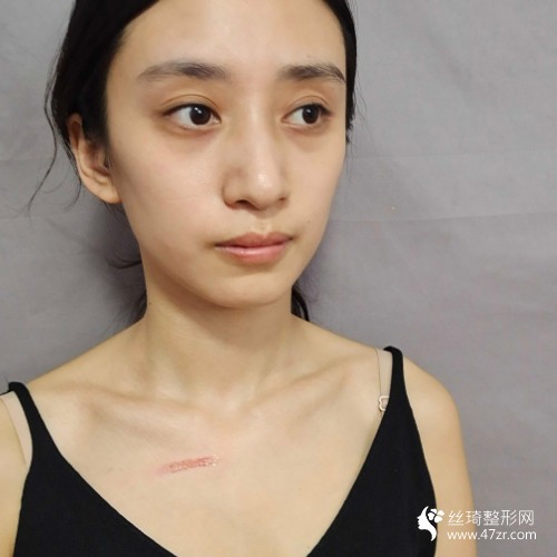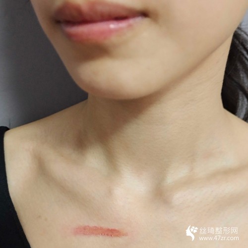術(shù)后50天:我的疤痕變淡了很多,讓我的形象變好看了,現(xiàn)在我可以穿那些低胸的衣服了,因為之前的疤痕存在著我的形象很不好看,我平常都是穿一些高領(lǐng)的衣服。