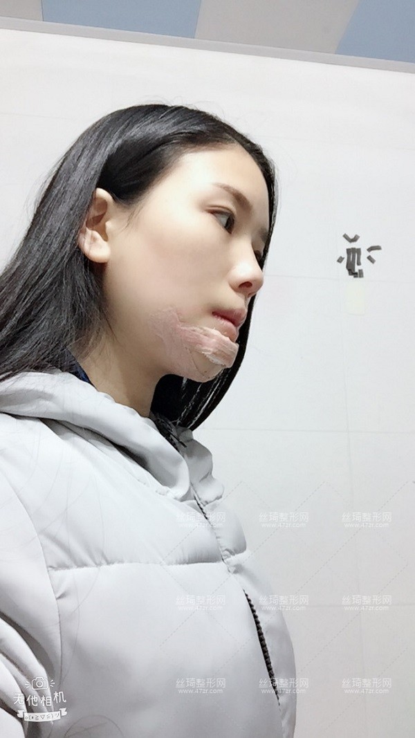 手術(shù)當(dāng)天實(shí)拍哦,皮膚有點(diǎn)過(guò)敏,有點(diǎn)泛紅。不過(guò)醫(yī)生說(shuō)沒(méi)事,自己會(huì)消退的。其實(shí)這次手術(shù)我也想了很久,一直都想墊下巴,因?yàn)橄掳秃罂s,真是很丑。通過(guò)做過(guò)墊下巴手術(shù)的同事了解到深圳北大醫(yī)院,她說(shuō)這邊的整形美容科不僅專(zhuān)業(yè),服務(wù)態(tài)度很好。我這次是院長(zhǎng)主刀的哦,感謝感謝。