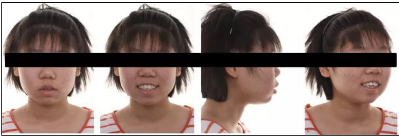 類骨面型,上頜前突、下頜后縮,開唇露齒。上下牙弓前突,上下牙列輕度擁擠,前牙開牙合。
