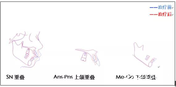 前后頭影測量結(jié)果對比: