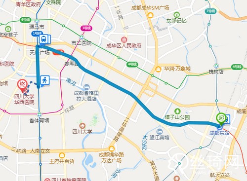 3、成都東站乘6站,坐地鐵7號(hào)線(大觀方向)到火車南站,向東步行120米到火車南站,乘4站地鐵1號(hào)線(韋家碾方向)到華西壩A口出站,向西步行1.2公里到四川大學(xué)華西醫(yī)院第二住院大樓-燒傷整形科。